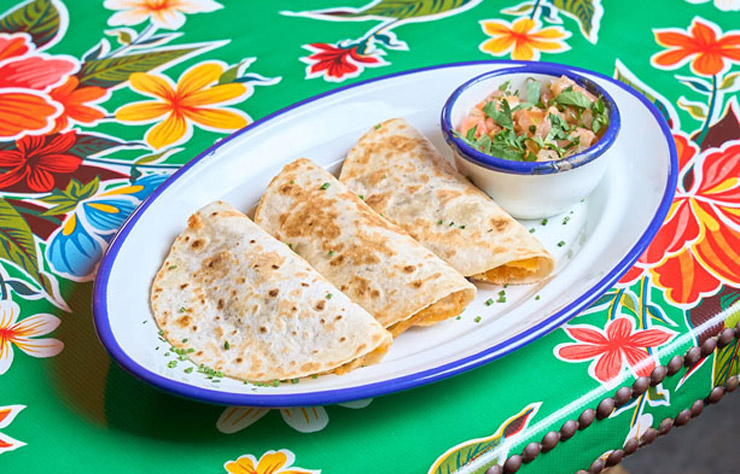 3 flour tortillas filled with melted cheese • pico de gallo (tomato, onion, coriander)